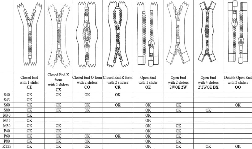 Du finner også oversikt over glidelåstyper og kombinasjoner lengre ned på siden.